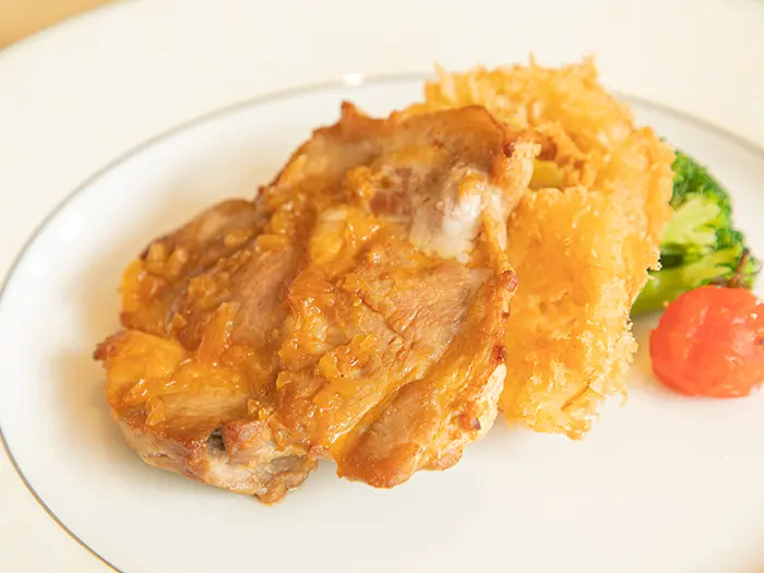 やわらかく旨みたっぷりの千葉県産イモ豚を使用したポークジンジャーソテー。