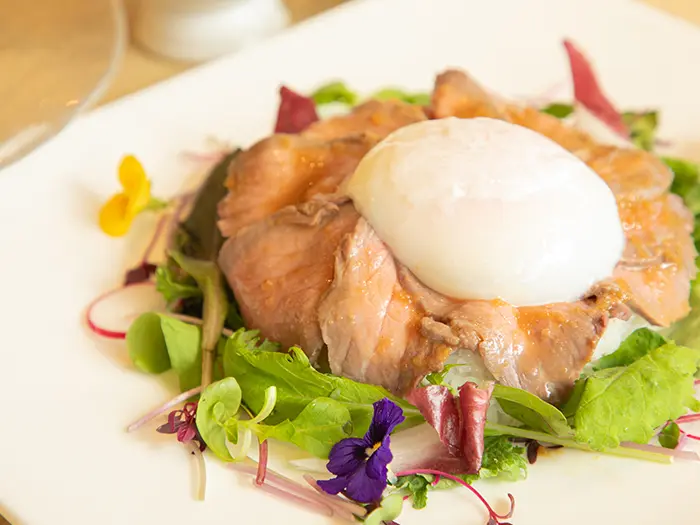 オーストラリア産牛肉のやわらかなうちもも肉をローストビーフに仕上げ、 彩り野菜とともに盛り込んだ贅沢ボウル。