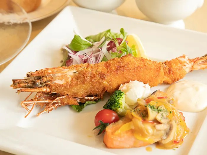 【鮭の洋風あんかけと大海老のフライ自家製タルタルで】