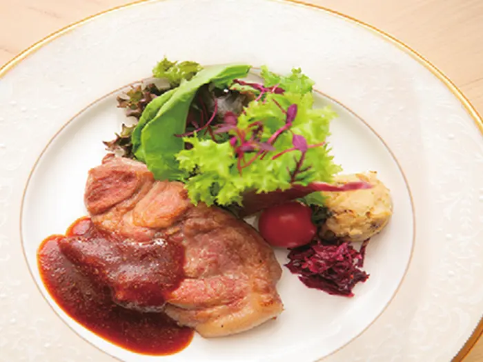 ・千葉県産マーガレットポークのローストりんごのソテー添え